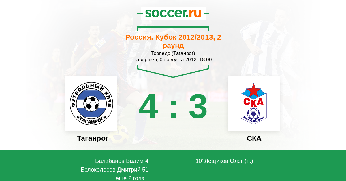 Протокол матча Таганрог против СКА
