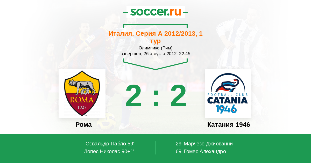 59' (1:1) Освальдо Пабло (9) (Де Росси Даниэле (16))