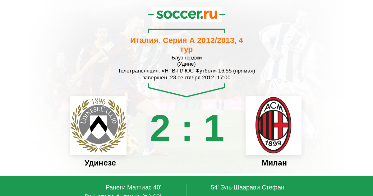 Протокол матча Удинезе против Милан