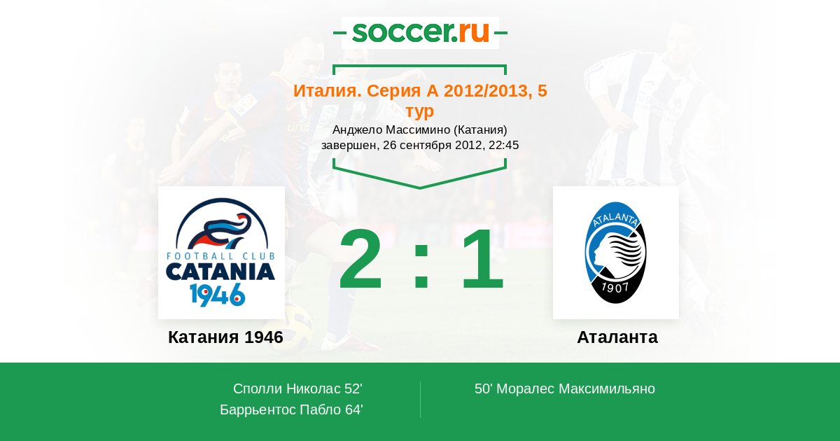 Протокол матча Катания 1946 против Аталанта