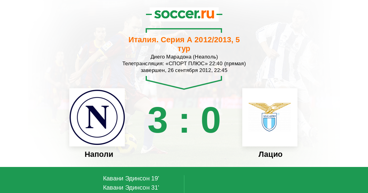 Протокол матча Наполи против Лацио