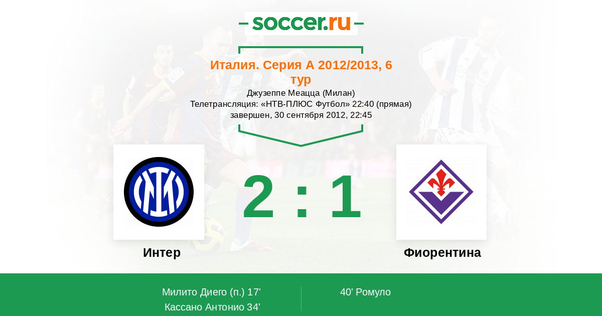 Протокол матча Интер против Фиорентина