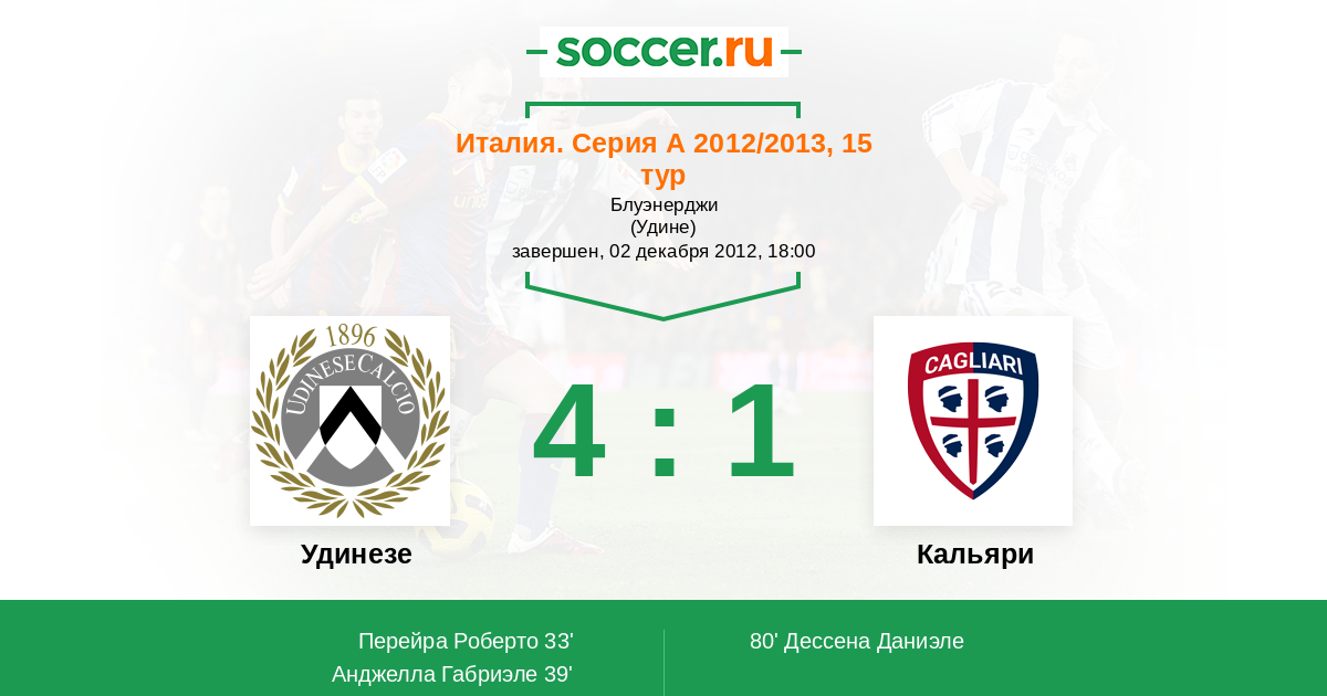 Протокол матча Удинезе против Кальяри