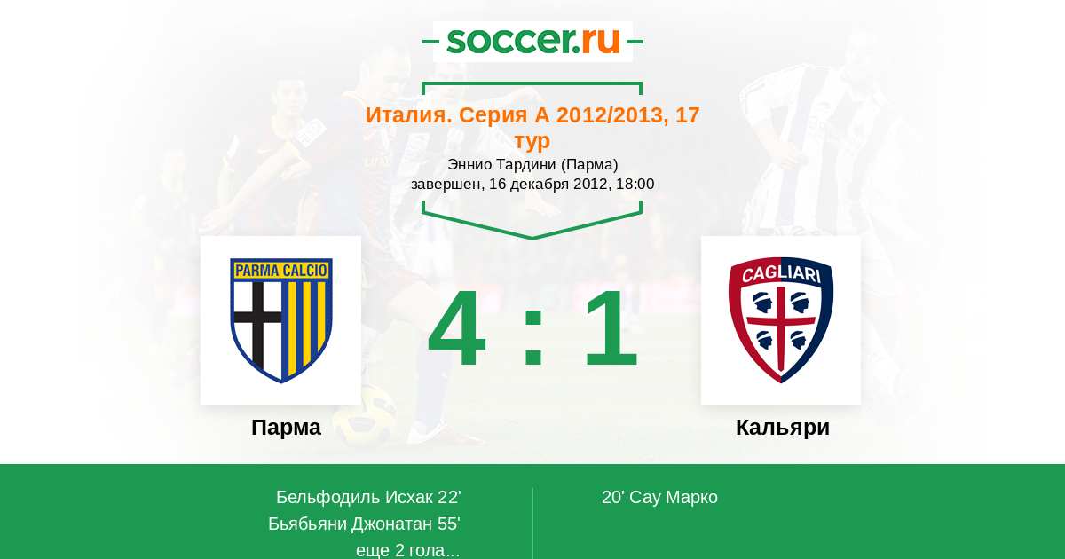 Протокол матча Парма против Кальяри