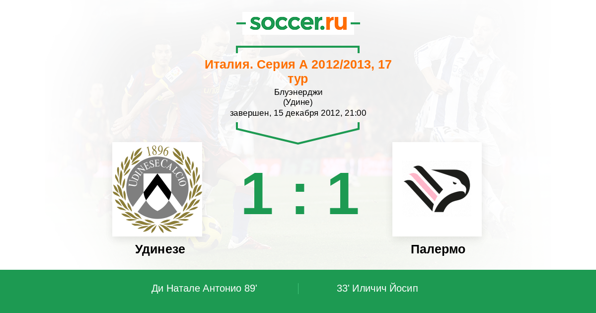 Протокол матча Удинезе против Палермо