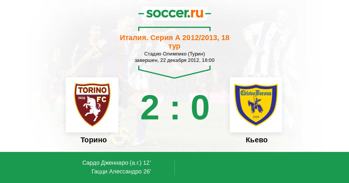 12' (1:0) Автогол Сардо Дженнаро (20)