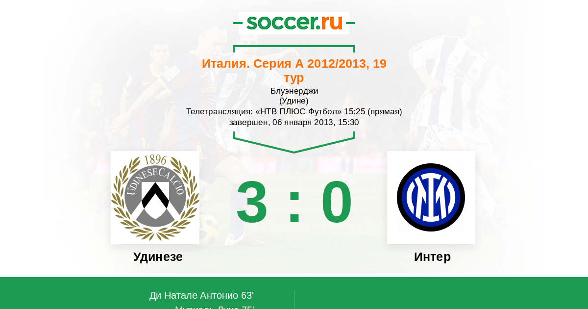 Протокол матча Удинезе против Интер