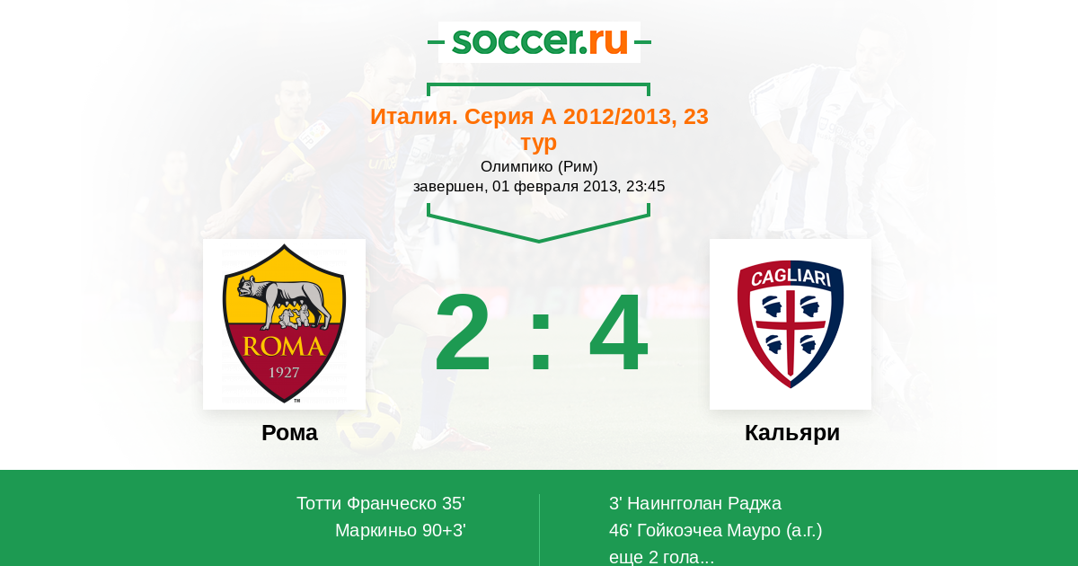 Протокол матча Рома против Кальяри
