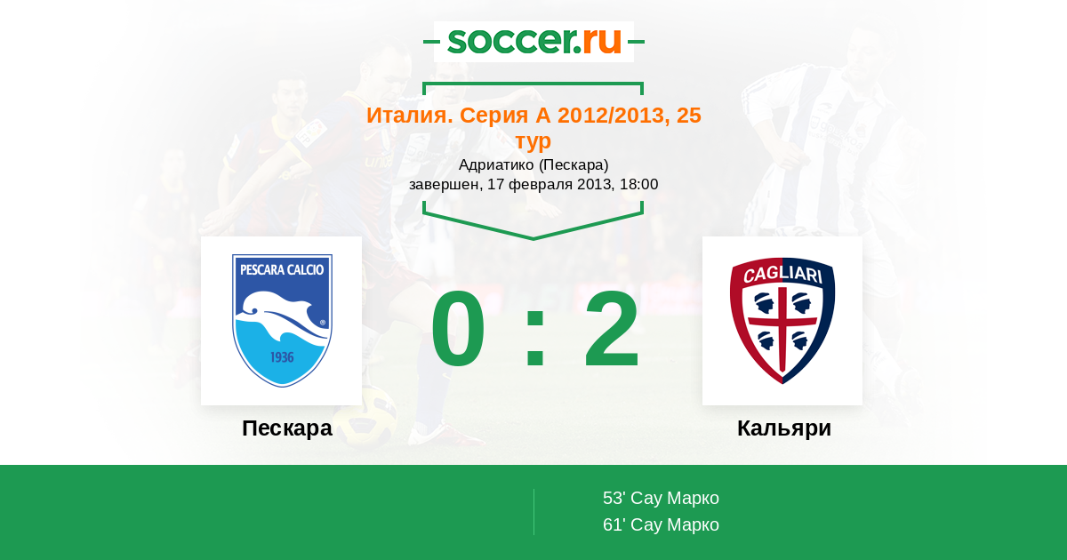 Протокол матча Пескара против Кальяри