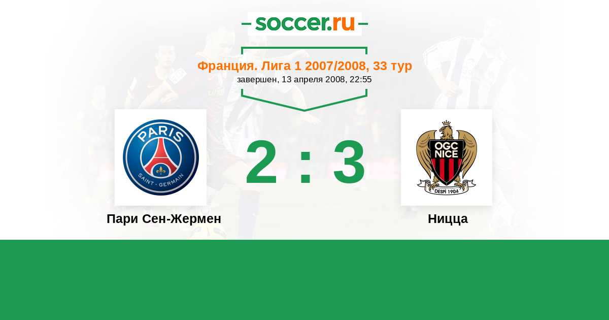 Франция. Лига 1 09.05.2007 Ницца Логотип футбольный клуб Ницца 1:0 Логотип футбольный клуб Пари Сен-Жермен (Париж) Пари Сен-Жермен