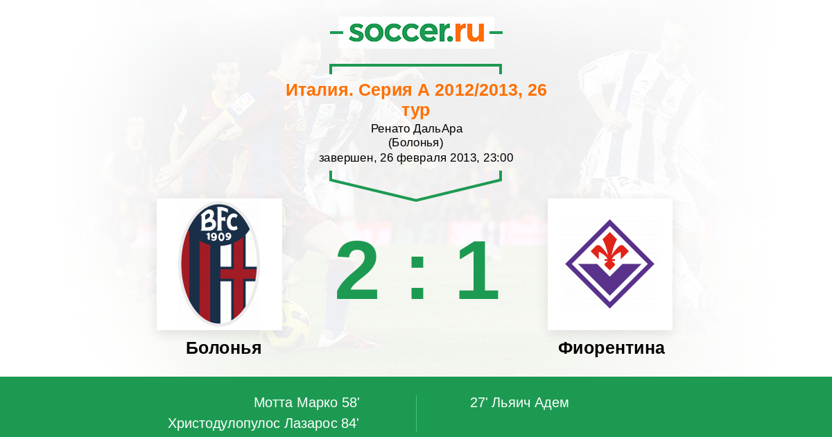 Протокол матча Болонья против Фиорентина