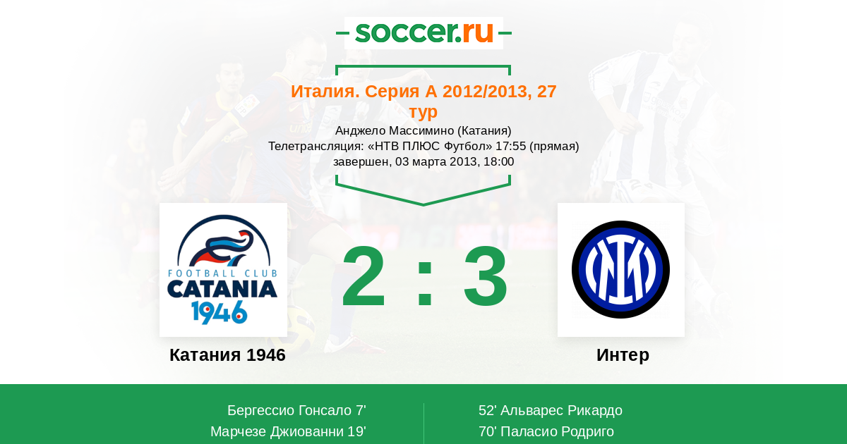 Протокол матча Катания 1946 против Интер