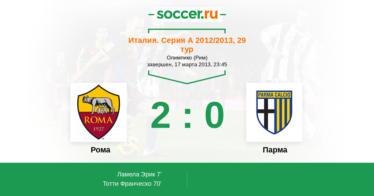 Протокол матча Рома против Парма