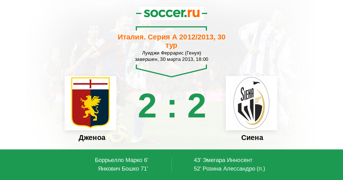 Протокол матча Дженоа против Сиена