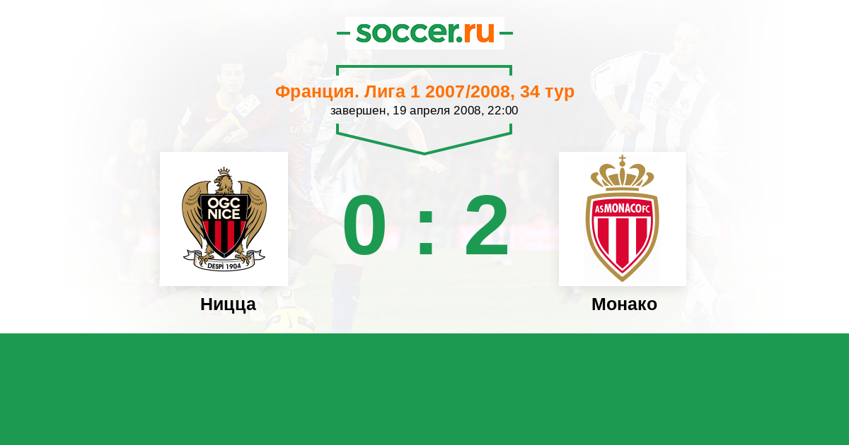 Франция. Лига 1 18.10.2008 Монако Логотип футбольный клуб Монако 1:2 Логотип футбольный клуб Ницца Ницца