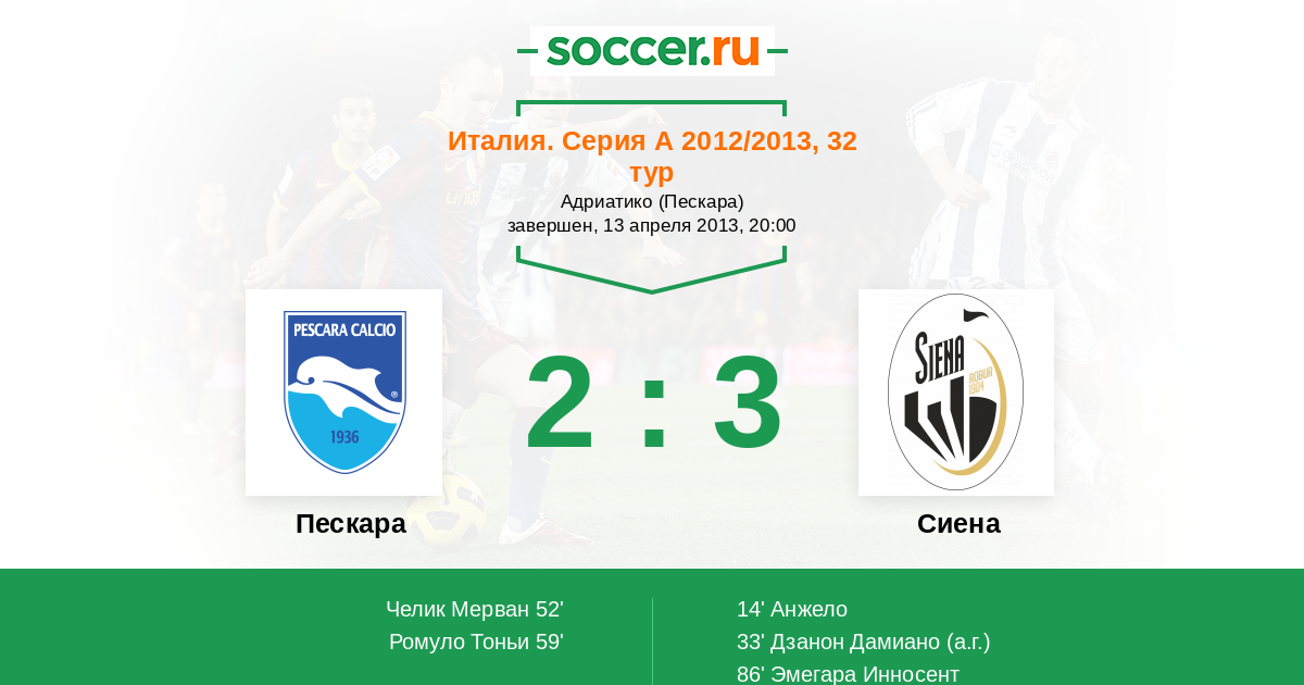 Протокол матча Пескара против Сиена
