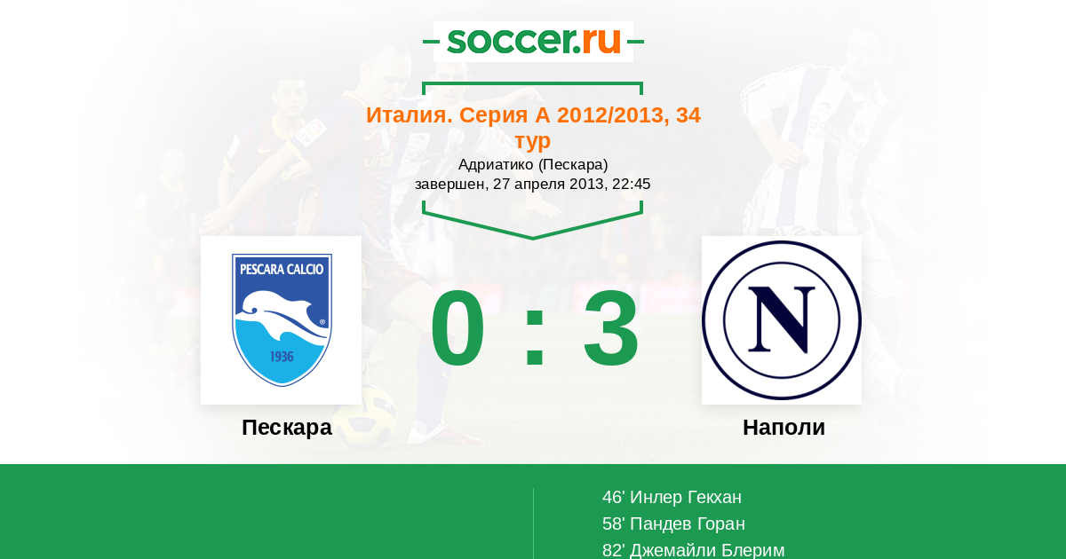 Протокол матча Пескара против Наполи