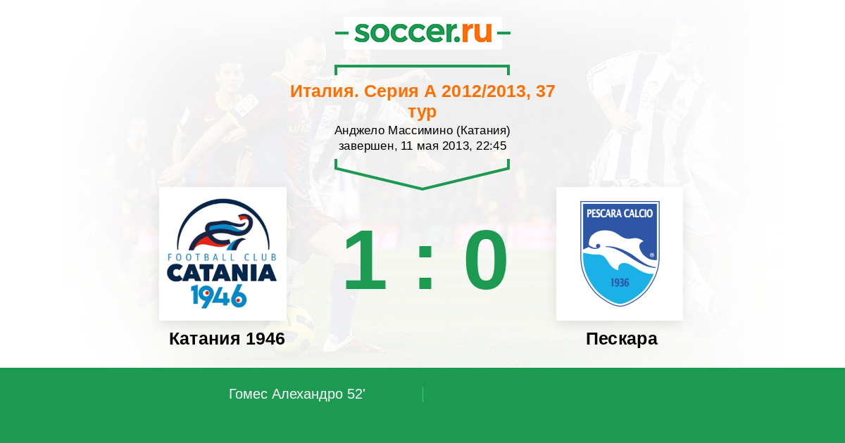 Протокол матча Катания 1946 против Пескара