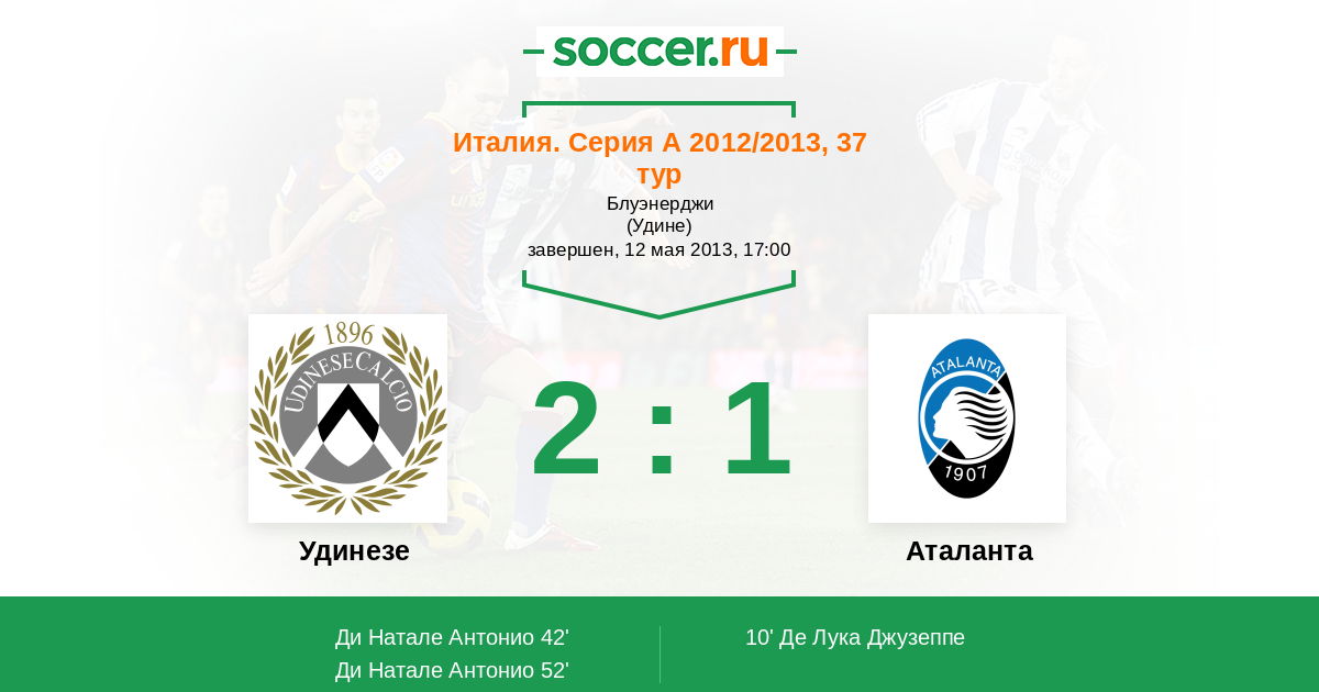 Протокол матча Удинезе против Аталанта
