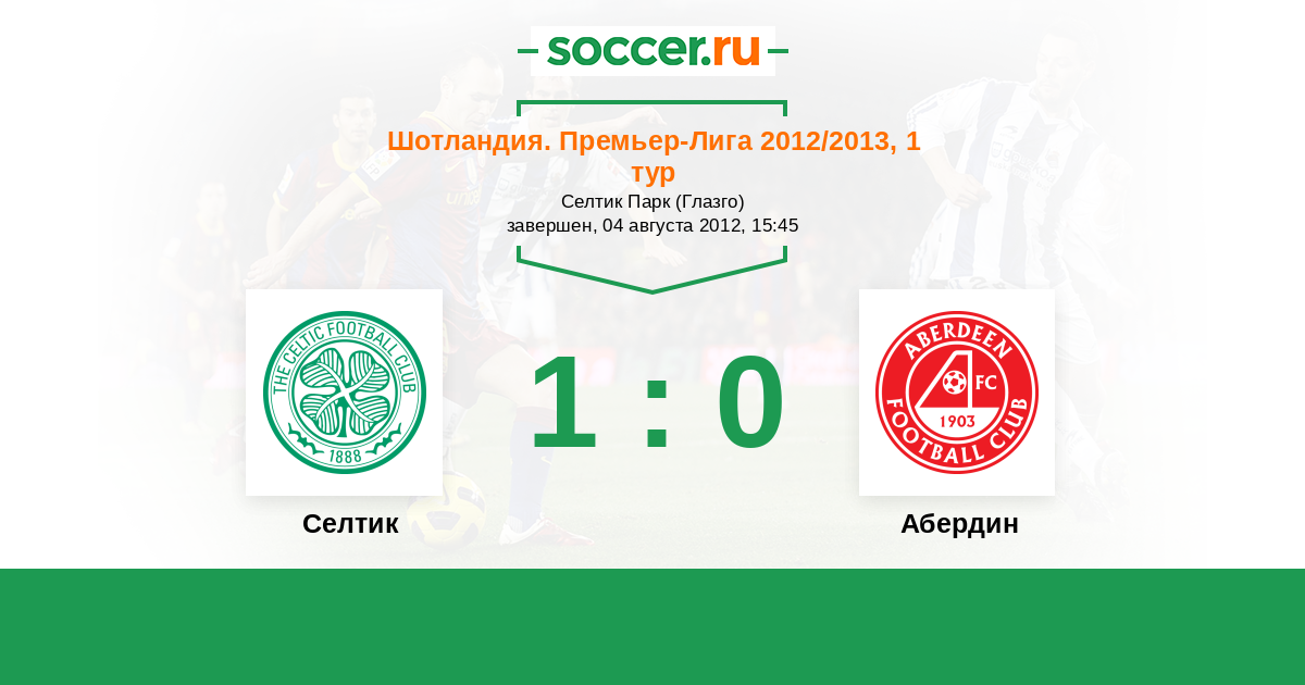 Шотландия. Премьер-Лига 17.11.2012 Абердин Логотип футбольный клуб Абердин 0:2 Логотип футбольный клуб Селтик (Глазго) Селтик