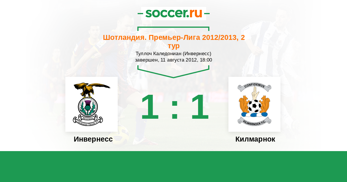 Шотландия. Премьер-Лига 10.03.2012 Инвернесс Логотип футбольный клуб Инвернесс 1:1 Логотип футбольный клуб Килмарнок Килмарнок