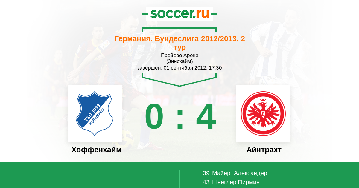 Протокол матча Хоффенхайм против Айнтрахт