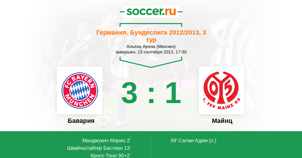 Протокол матча Бавария против Майнц