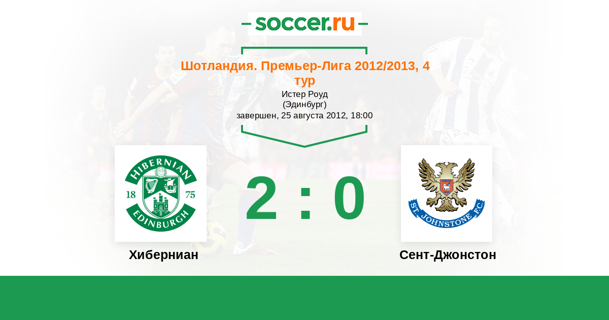 Шотландия. Премьер-Лига 14.09.2013 Сент-Джонстон Логотип футбольный клуб Сент-Джонстон (Перт) 1:2 Логотип футбольный клуб Хиберниан (Эдинбург) Хиберниан