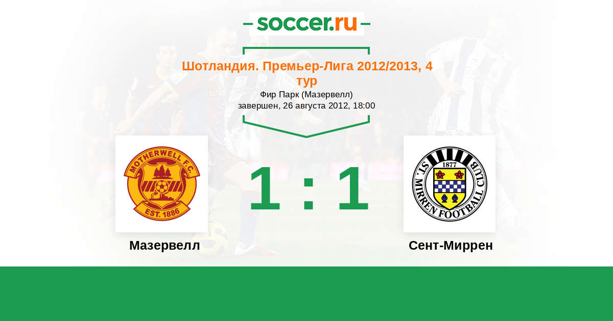 Шотландия. Премьер-Лига 21.12.2012 Сент-Миррен Логотип футбольный клуб Сент-Миррен (Пейсли) 2:1 Логотип футбольный клуб Мазервелл Мазервелл