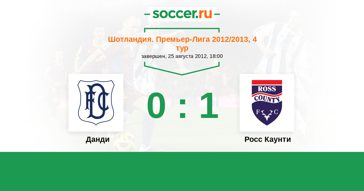 Шотландия. Премьер-Лига 15.12.2012 Росс Каунти Логотип футбольный клуб Росс Каунти (Дингволл) 1:1 Логотип футбольный клуб Данди Данди