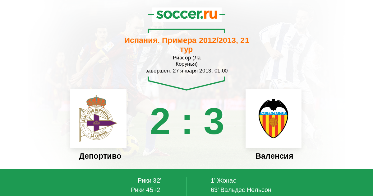 Протокол матча Депортиво против Валенсия