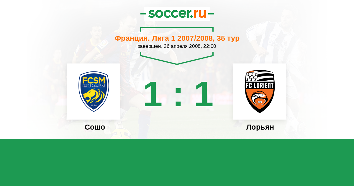 Франция. Лига 1 27.09.2008 Сошо Логотип футбольный клуб Сошо (Монбельяр) 1:1 Логотип футбольный клуб Лорьян Лорьян