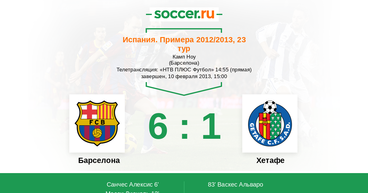 6' (1:0) Санчес Алексис (9) (Иньеста Андрес (8))