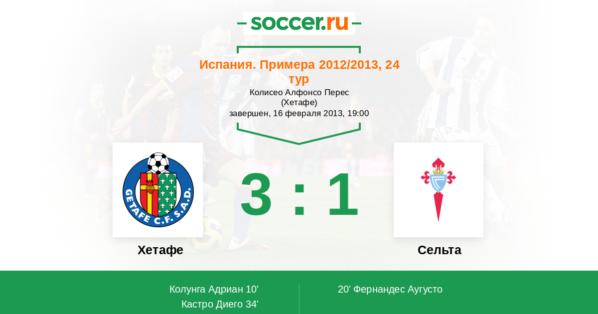 Протокол матча Хетафе против Сельта