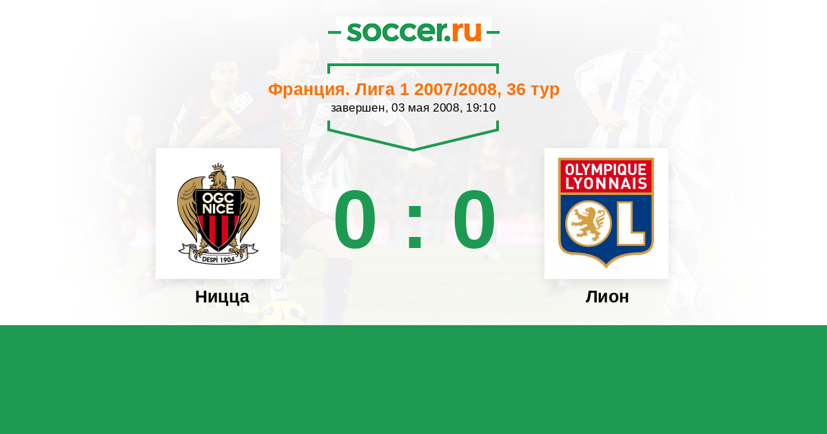 Франция. Лига 1 15.12.2007 Лион Логотип футбольный клуб Лион 0:0 Логотип футбольный клуб Ницца Ницца