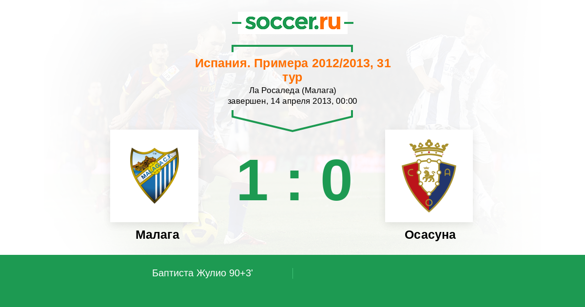 Протокол матча Малага против Осасуна