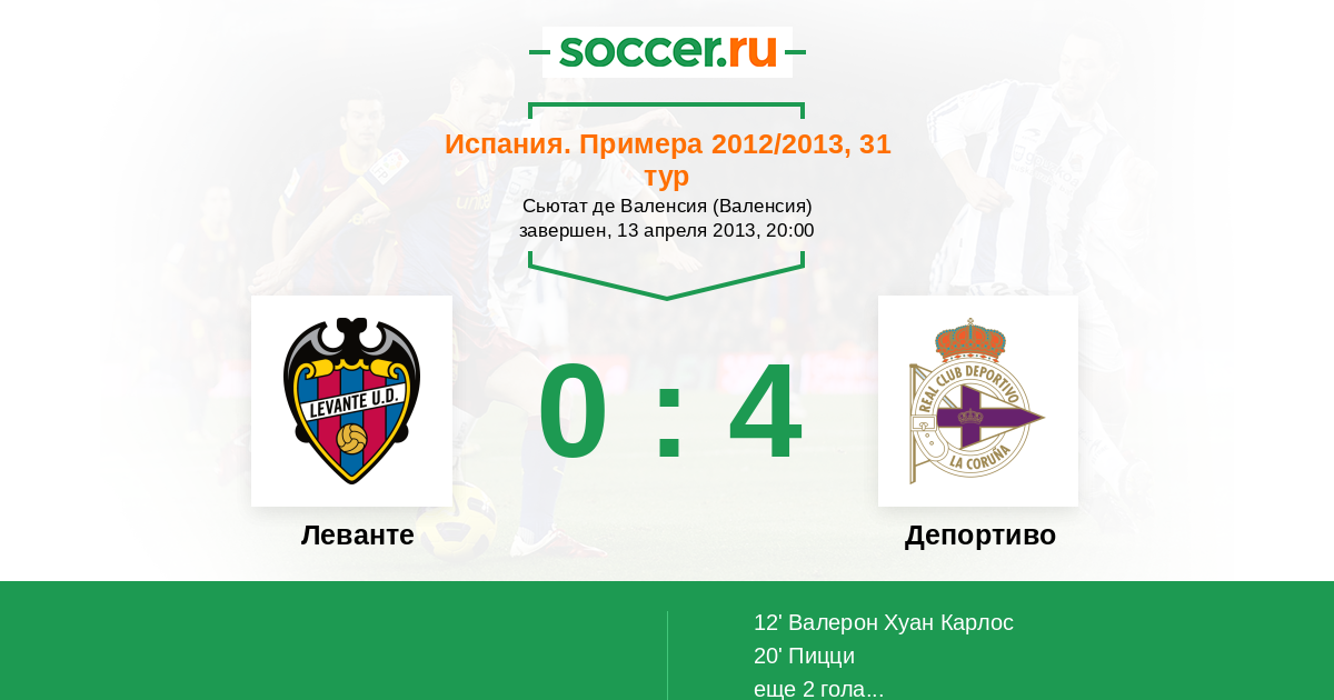 Протокол матча Леванте против Депортиво