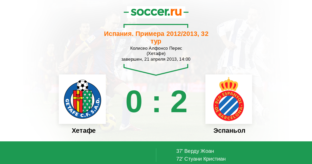 Протокол матча Хетафе против Эспаньол