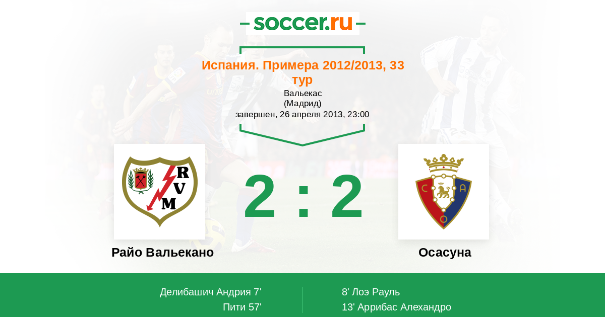 Протокол матча Райо Вальекано против Осасуна