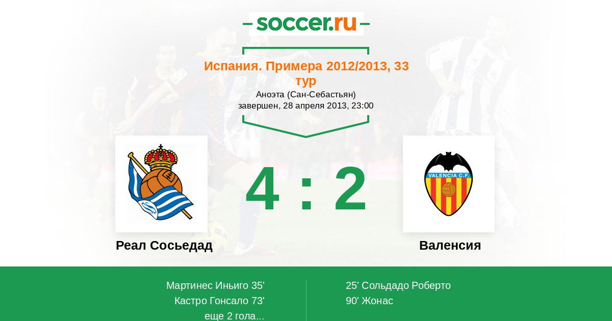 Протокол матча Реал Сосьедад против Валенсия