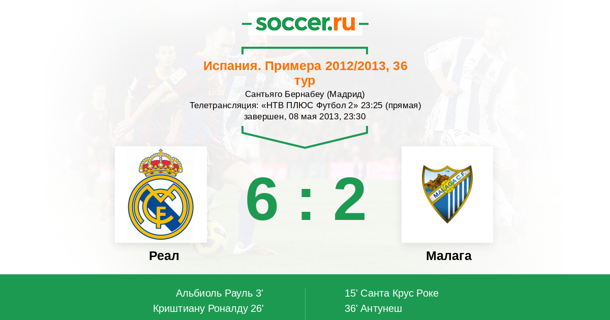 Протокол матча Реал против Малага