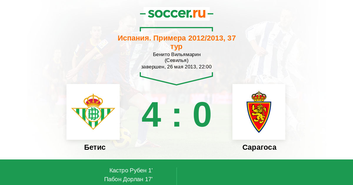 Протокол матча Бетис против Сарагоса