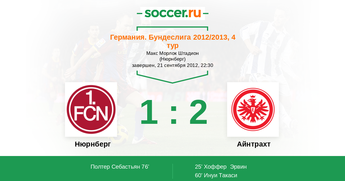 Протокол матча Нюрнберг против Айнтрахт