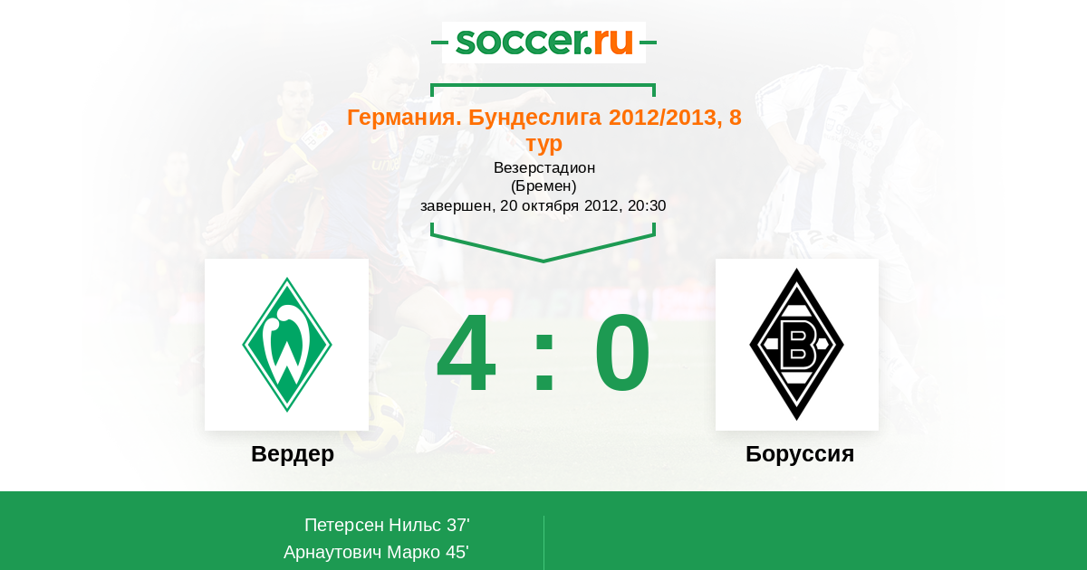 Протокол матча Вердер против Боруссия