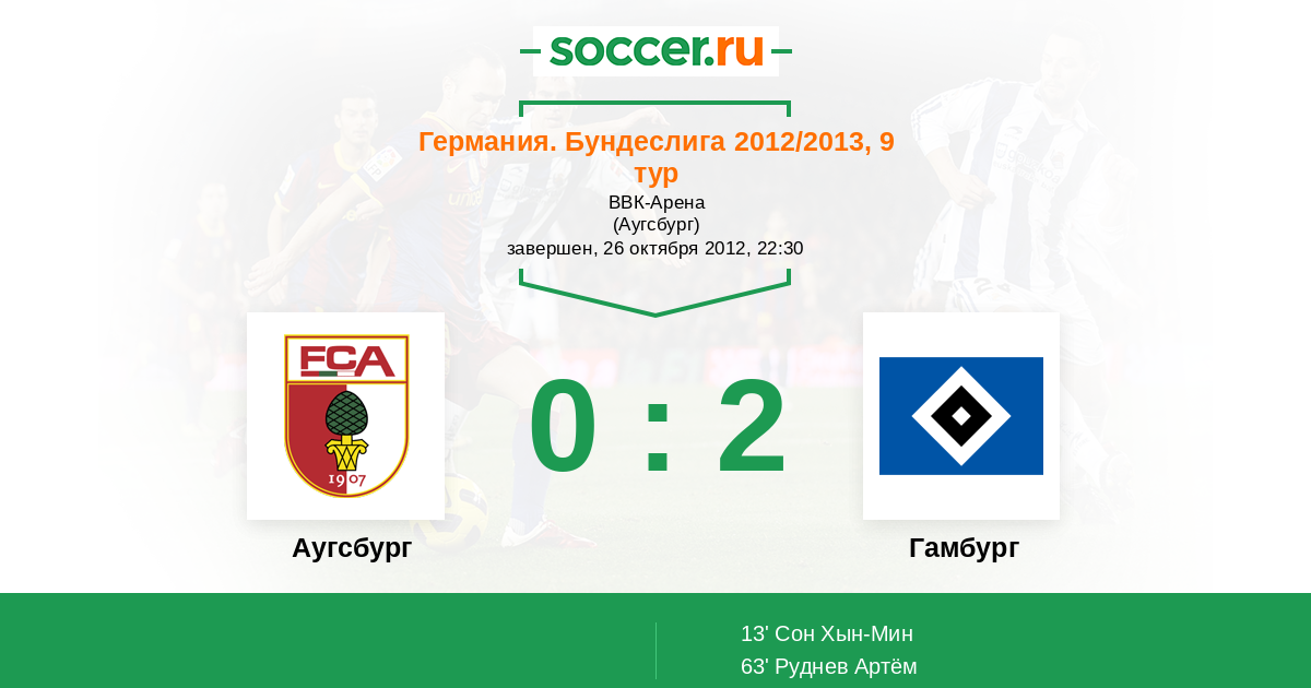 Протокол матча Аугсбург против Гамбург