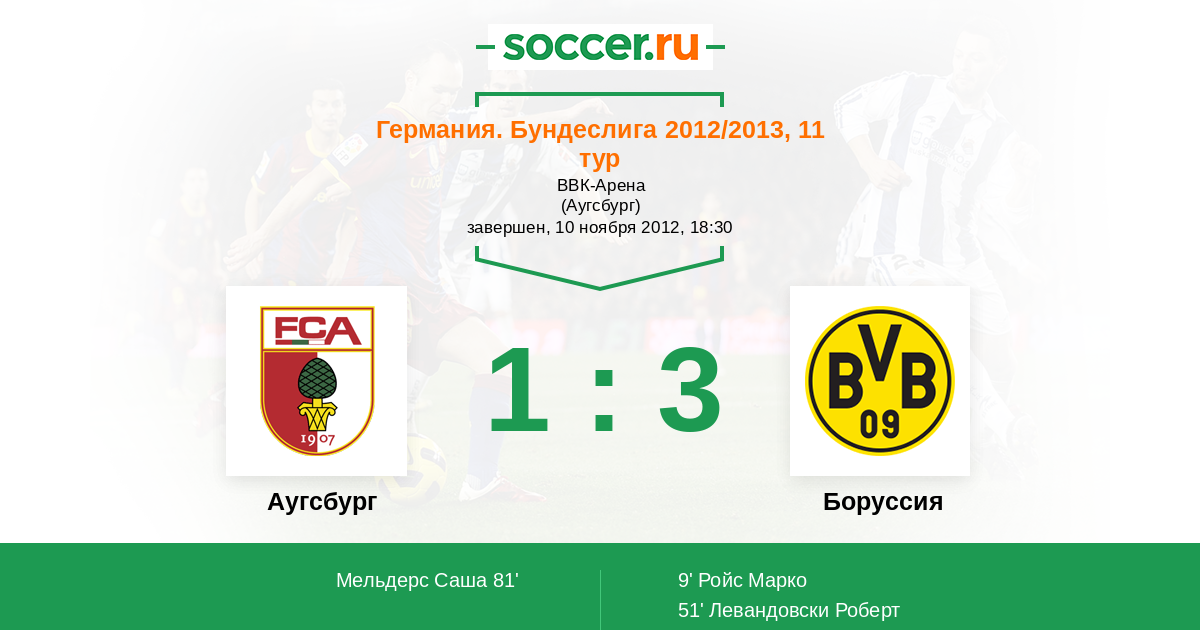 Протокол матча Аугсбург против Боруссия