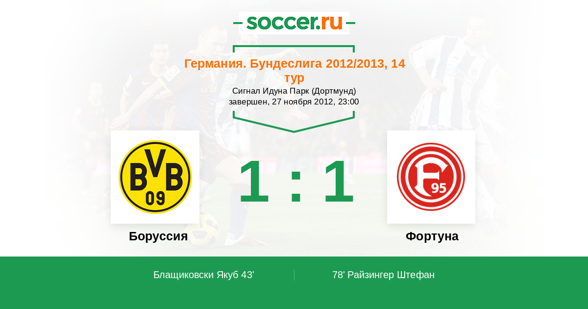 Протокол матча Боруссия против Фортуна