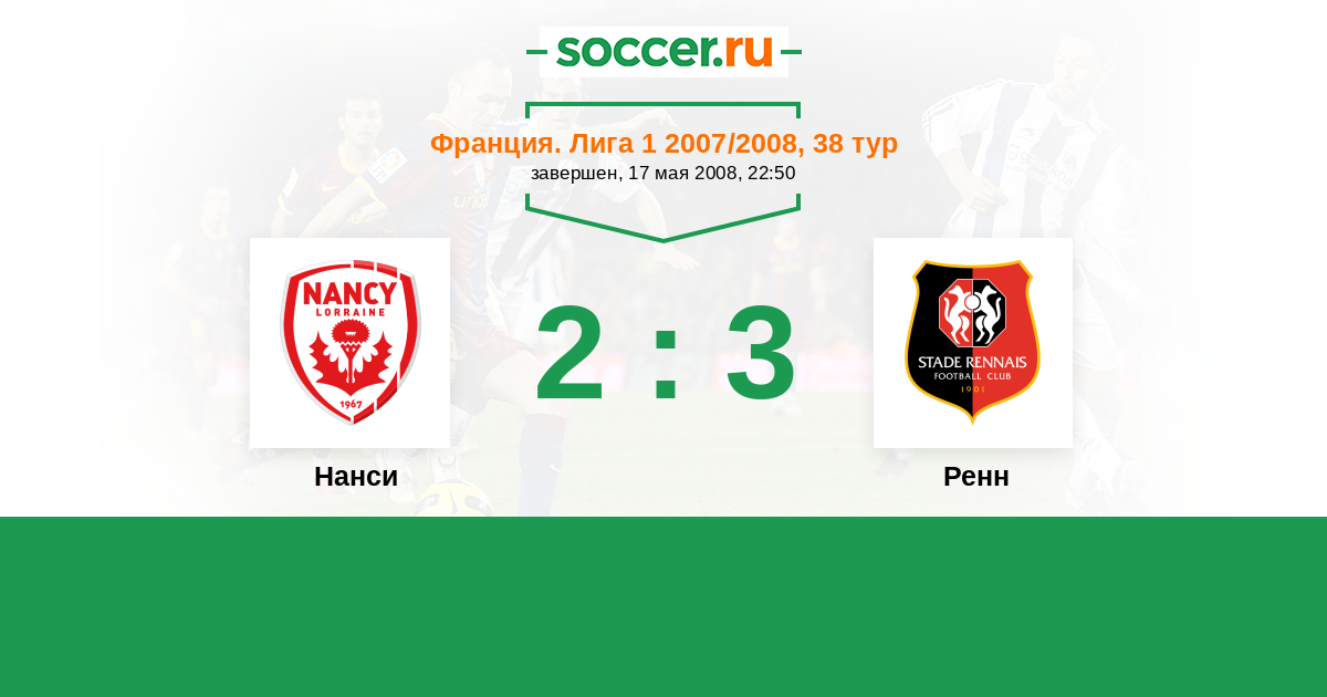Франция. Лига 1 04.08.2007 Ренн Логотип футбольный клуб Ренн 0:2 Логотип футбольный клуб Нанси Нанси