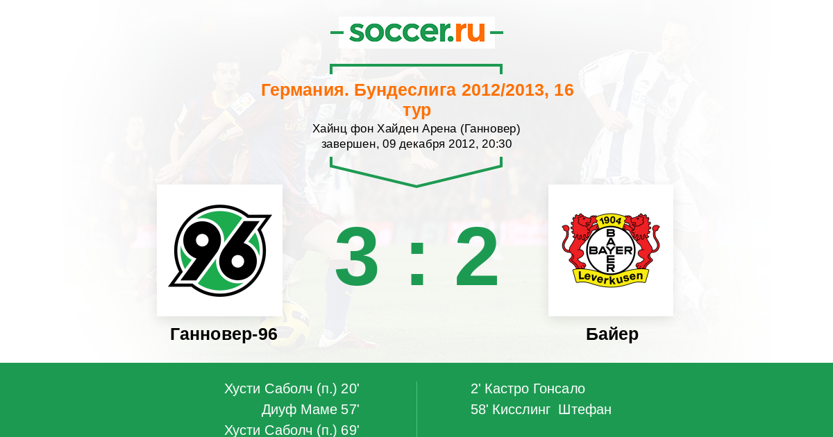 Протокол матча Ганновер-96 против Байер