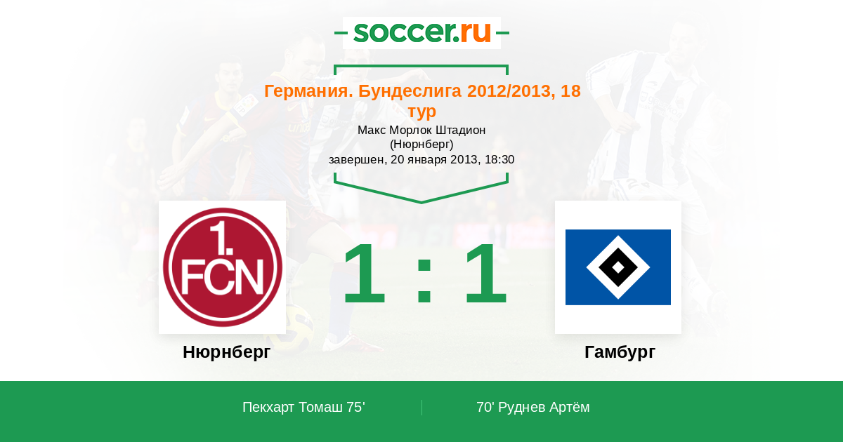 Протокол матча Нюрнберг против Гамбург